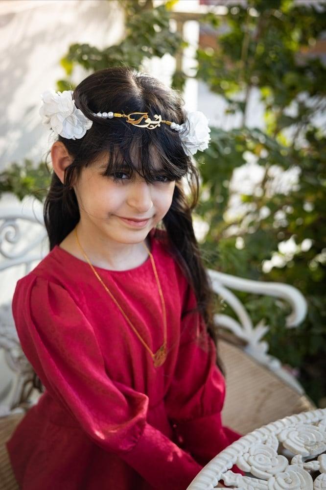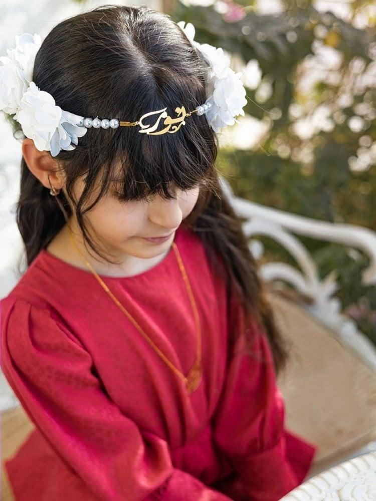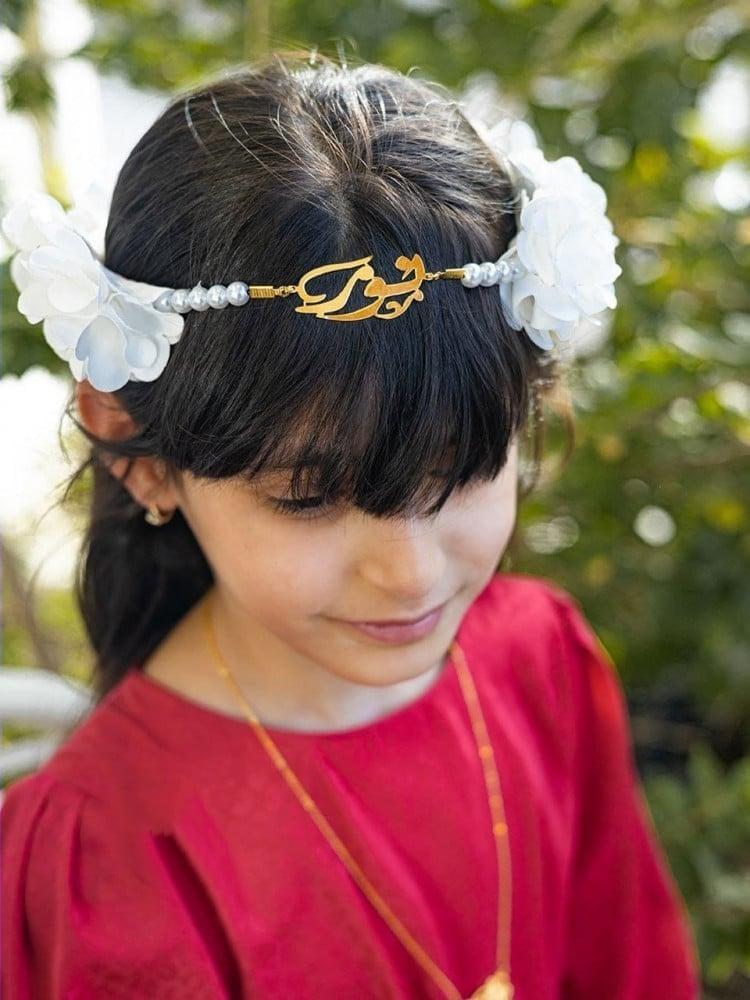 طوق ورد بناتي مع الاسم بتصميم مميز وراقي.